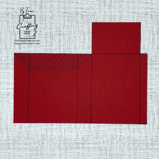 After scoring the cardbase, I used one of the Basic Borders dies to create the envelope flap on the shortest panel. The "stamp" was punched out from one of the tags in the kit using the Rectangular Postage Stamp punch. The images are from a combination of both October and November kits, stamped in Cherry Cobbler, Shaded Spruce, and Memento Tuxedo Black. For reference, I've shown how the card looks on the outside when it's completely opened.
