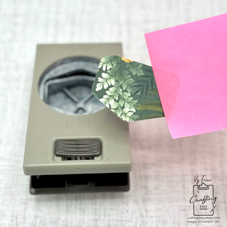 The Heartfelt Hexagon punch is fabulous because it's easy to tile the pieces together, and it's large enough to fit many sentiments. I started by punching a hexagon on the front of the card. I pushed the punch in as far as it would go, and I positioned it about 1/8" from the right edge of the card--the exact position doesn't really matter, and changing it up gives you different looks. I also punched out a bunch of hexagons from Designer Series Paper. To make the most efficient use of the paper, I cut it into 2" high strips, which fits the punch perfectly and minimizes waste.